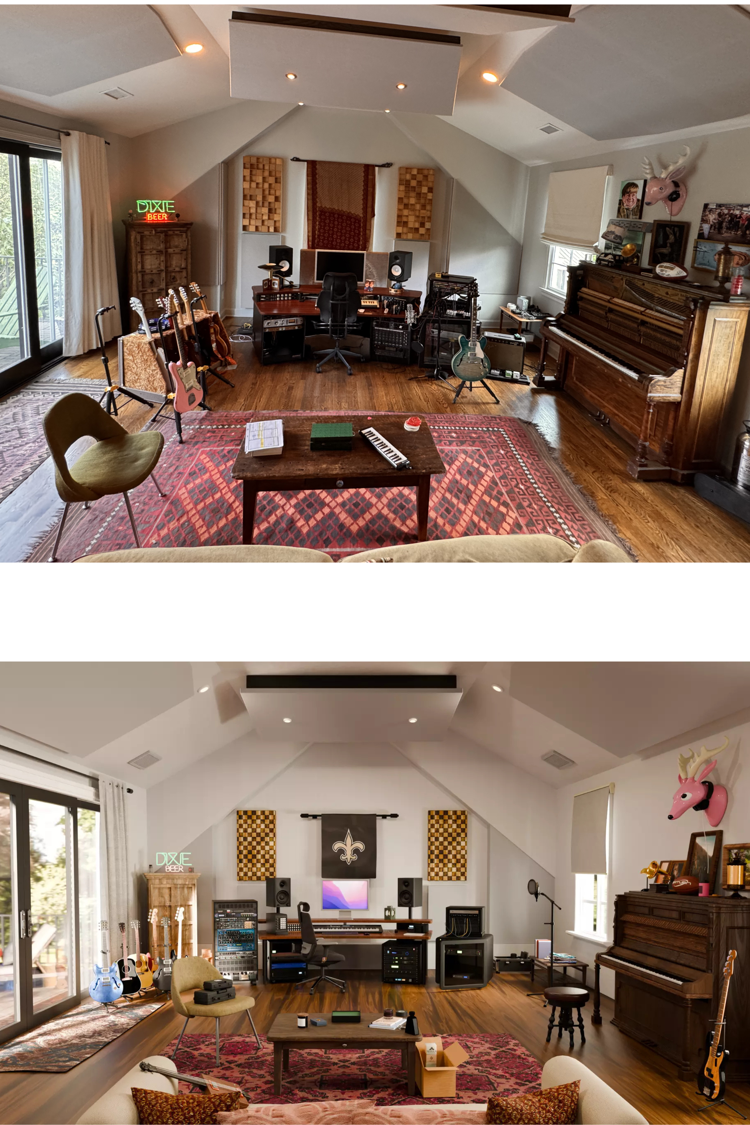 Bottom: The digital representation of that studio on Soundbreak.
